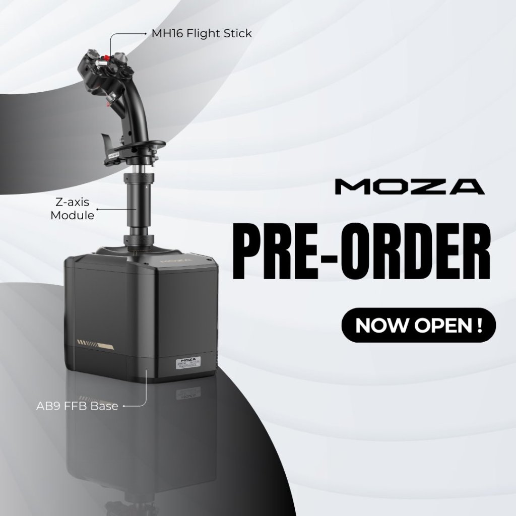 You can pre-order the highly anticipated MOZA AB9 Active Force Feedback Base, MH16 Flightstick, and Z-axis Module at www.mozaracing.com.