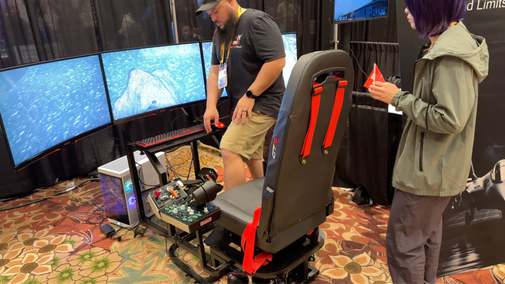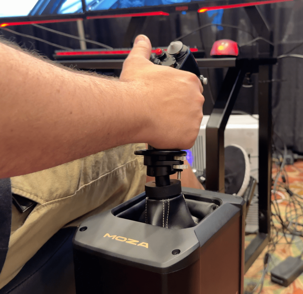 FS EXPO 2024 – MOZA Booth Trying the Motion Base Provided by GT Racing and New Flight Sim Hardware.